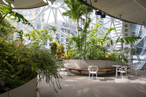 Pour les séduire, les grandes entreprises font de la végétalisation de leur bureau un enjeu d’image fort. Les géants du numérique, à la lutte pour attirer de nombreux « cerveaux », ne s’y trompent pas. Google propose dans son siège parisien, comme partout à travers le monde, des créations florales grandioses sur les plafonds, les murs et les façades, ou encore des arbres d’intérieur. À Seattle, le siège d’Amazon aux airs de forêt tropicale compte pas moins de 40 000 plantes, de nombreuses cascades et des passerelles en bois. Au-delà du coup de pub auprès des clients et des futurs collaborateurs, l’objectif poursuivi par le PDG Jeff Bezos reste pragmatique : augmenter la créativité et l’efficacité de ses équipes