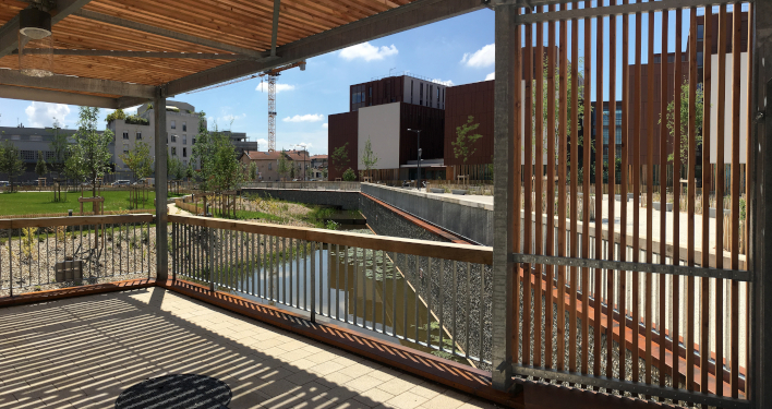 Mais c’est peut-être plus globalement la question de la gestion de l’eau qui domine les enjeux environnementaux, en premier lieu du point de vue de la récupération des eaux pluviales comme à Lyon. Là, grâce à une collaboration transverse avec les architectes des programmes riverains, le plan d’eau absorbe tous les écoulements du parc et des équipements avoisinants. « Nous portons une grande attention à cette responsabilité de nos aménagements et parcs afin qu’ils contribuent concrètement à améliorer l’écosystème urbain sur les questions de biodiversité et de valeurs d’usage, qu’il s’agisse de l’ensoleillement, de l’ombre ou du rafraîchissement par la gestion et la valorisation des eaux urbaines », ajoute Thierry Laverne.