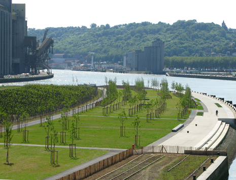 Il faut ensuite que les entreprises du paysage et de dépollution adaptent les conditions finales à la topographie du projet en termes de composition et d’usages. À Lyon, le sol a été nettoyé au préalable mais certains endroits ayant été confinés en surface, la culture de consommables n’était pas envisageable. À Rennes et à Rouen, c’est la solution de l’enfouissement des polluants sous une butte végétale ou boisée qui a été retenue. « Celle-ci permet de gérer écologiquement le problème des terres polluées ; quelques poches résiduelles, témoins des activités d’extraction du charbon, se devaient d’être confinées par une couche de terre tout en développant un milieu forestier riche, propice au développement de la faune de la Vallée de la Seine », illustre Loïc Bonnin1.