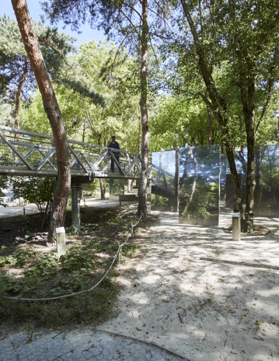 À gauche : Le square des miroirs au parc de la Villette à Paris est une réalisation du Groupe Loiseleur. © DR. À droite : Le square Colbert à Reims est une réalisation paysagère du Groupe Loiseleur. © DR.