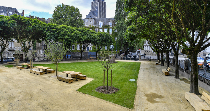 Les tables de pique-nique du square sont aujourd’hui plébiscitées par les riverains. © Ville de Nantes.