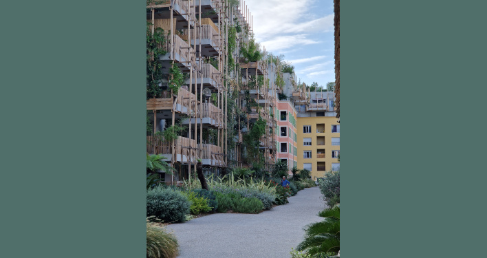 Champ d’expérimentation végétale et pari sur le moyen terme : situé au cœur d’un parc public paysager de 3 hectares, l’écoquartier du Ray à Nice est, pour l’heure, le plus grand projet immobilier à façades végétalisées d’Europe1. Jean-Frédéric Gay et Nathalie Melin, paysagistes fondateurs de la Compagnie du Paysage et artisans de sa conception, nous évoquent le mode de développement et de gestion de ce projet innovant…