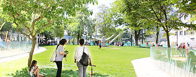 La voirie a été détournée de son axe pour redonner toute son unité au square des États-Unis, agrandissant ainsi d’un tiers son emprise utilisable pour les enfants et les riverains. Cet espace de verdure a été totalement ouvert. Les jeux sont disposés dans des alvéoles aux clôtures transparentes assurant ainsi la sécurité des petits sans couper le square du tissu urbain. Sur une ancienne friche appartenant au Crédit Agricole dont le siège est riverain, un nouveau parc a été créé. Les aménagements privés et publics se complètent parfaitement. La place Jean-Jaurès a également été totalement transformée.