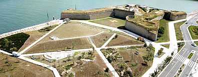 Installé sur un promontoire entre la plage, le chenal, le port et le centre-ville, le site réaménagé bénéficie d’une position tout à fait remarquable, marquée par la présence d’un ancien fort militaire construit par Vauban. Parce que ce site est soumis aux embruns, c’est le vent qui a permis de générer un nouveau lieu naturel ludique et cohérent tirant parti de sa situation littorale.