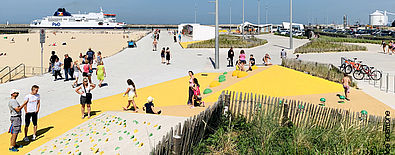 La création de ce vaste parc dunaire en front de mer a permis de restituer ce lieu aux piétons et aux usages ludiques.