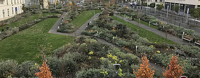 Îlot vert au cœur d'un arrondissement parisien dense, ouvert aux riverains, cet espace public très végétalisé, luxuriant et coloré, est attractif pour la faune locale qui s'y refugie et s’y nourrit.