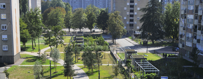 La requalification du quartier s’est organisée suivant les tracés et les limites privées/publiques. Au pied des immeubles denses se sont dessinés une avenue, des rues, des jardins et un parc. Ce travail autour du côtoiement, des lisières et des usages a permis de créer une articulation sociale et fonctionnelle entre ces îlots s’étirant le long de la Saône. Les jardins partagés constituent des filtres actifs entre l’espace privé et l’espace public d’un généreux parc-promenade qui traverse tout le quartier, tandis que les jardins de cœur d’îlot rétablissent une échelle de voisinage.