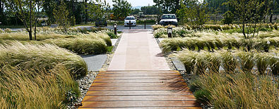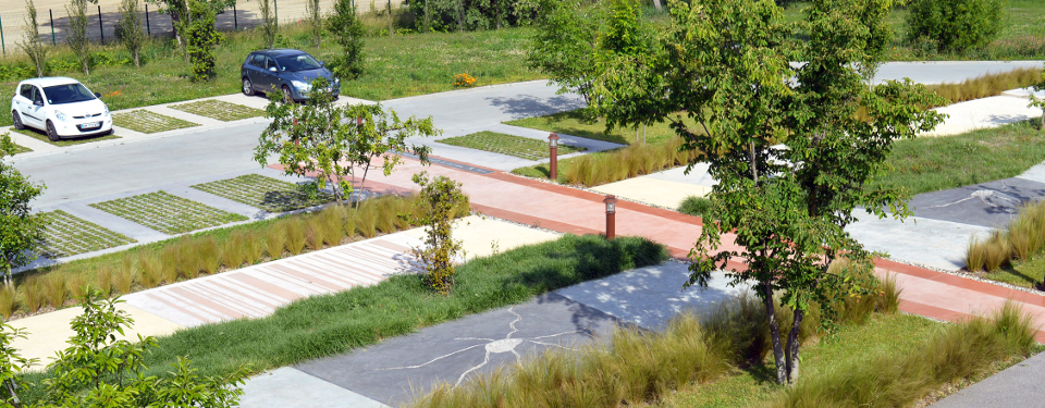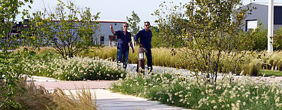 À la fois esthétique et utile, cet aménagement constitue un écrin de verdure au cœur d’une zone d’activité industrielle.