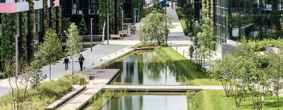Lieu de vie et de passage, ce parc participe au confort et au bien-être des 3 000 salariés du site à seulement quelques minutes de Paris.