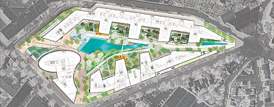 Ce parc, situé au cœur des façades, semble dilaté. Il offre une multiplicité de situations spatiales, propices à tous les usages, tout en amenant une présence très forte de la nature, qui se décline au travers d’ambiances singulières.