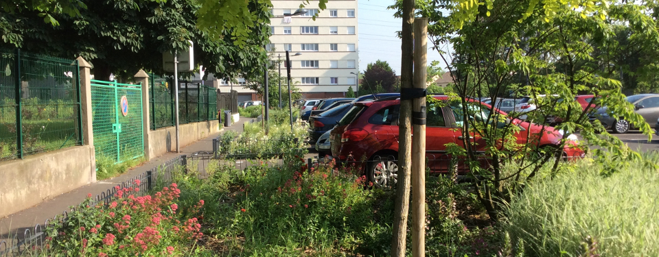 Achevé en 2015, cet aménagement a permis de recréer l’espace d’une liaison piétonnière entre des logements sociaux, des commerces et une école. Les piétons, aujourd’hui plus à l’écart de la rue, sont isolés du trafic routier par la mise en place d’un paysage très naturel et très protecteur qui fait office de mur végétal sécurisant. Cette nouvelle végétation très luxuriante et adaptée offre ainsi un dépaysement total aux riverains et donne une nouvelle image au quartier.